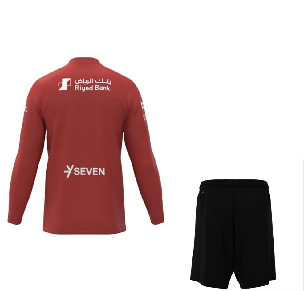 - *اللون*: يأتي السويتر باللون الأحمر مع شورت أسود، مما يعكس هوية النادي ويضيف لمسة من الأناقة.